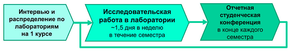 Главное отличие системы подготовки студентов на ФНМ – режим максимального благоприятствования для занятий научной работой. Студенты вовлекаются в научную работу уже с первого дня обучения на факультете, когда за ним закрепляется научный руководитель, под руководством которого они выполняют работу в лабораториях. Студенты имеют возможность по собственному выбору работать в научных лабораториях не только факультета наук о материалах, но также химического, физического, механико-математического (а потенциально геологического и биологического) факультетов, академических институтов и совместных научно-образовательных центров. В конце каждого семестра студенты представляют на обязательной научной сессии собственные научные результаты, полученные в течение прошедшего семестра, а к моменту защиты ВКР большинство студентов имеют собственные научные публикации в престижных международных научных журналах.